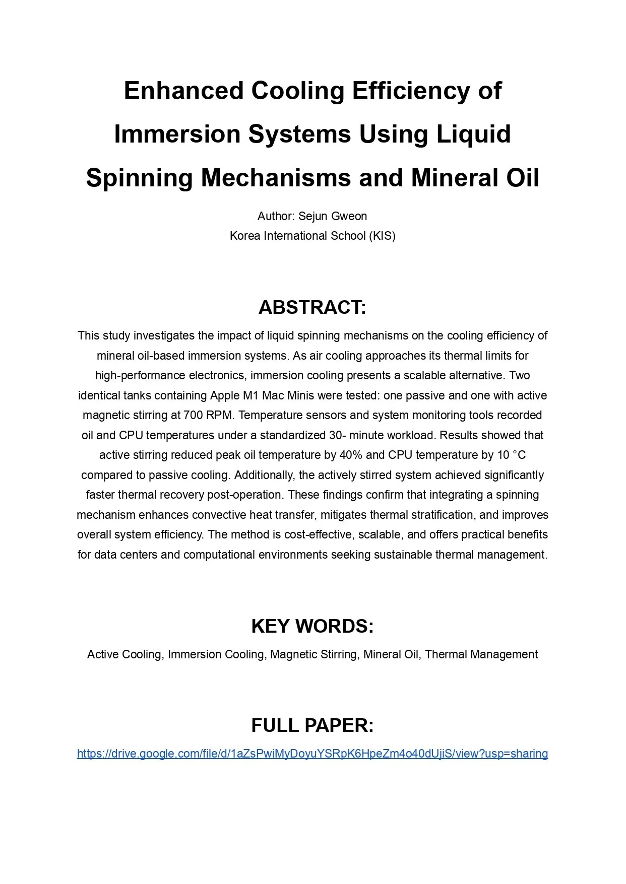 Conducted an experimental study on immersion cooling systems, comparing passive vs. active liquid spinning mechanisms in mineral oil-based environments using Apple M1 Mac Minis.